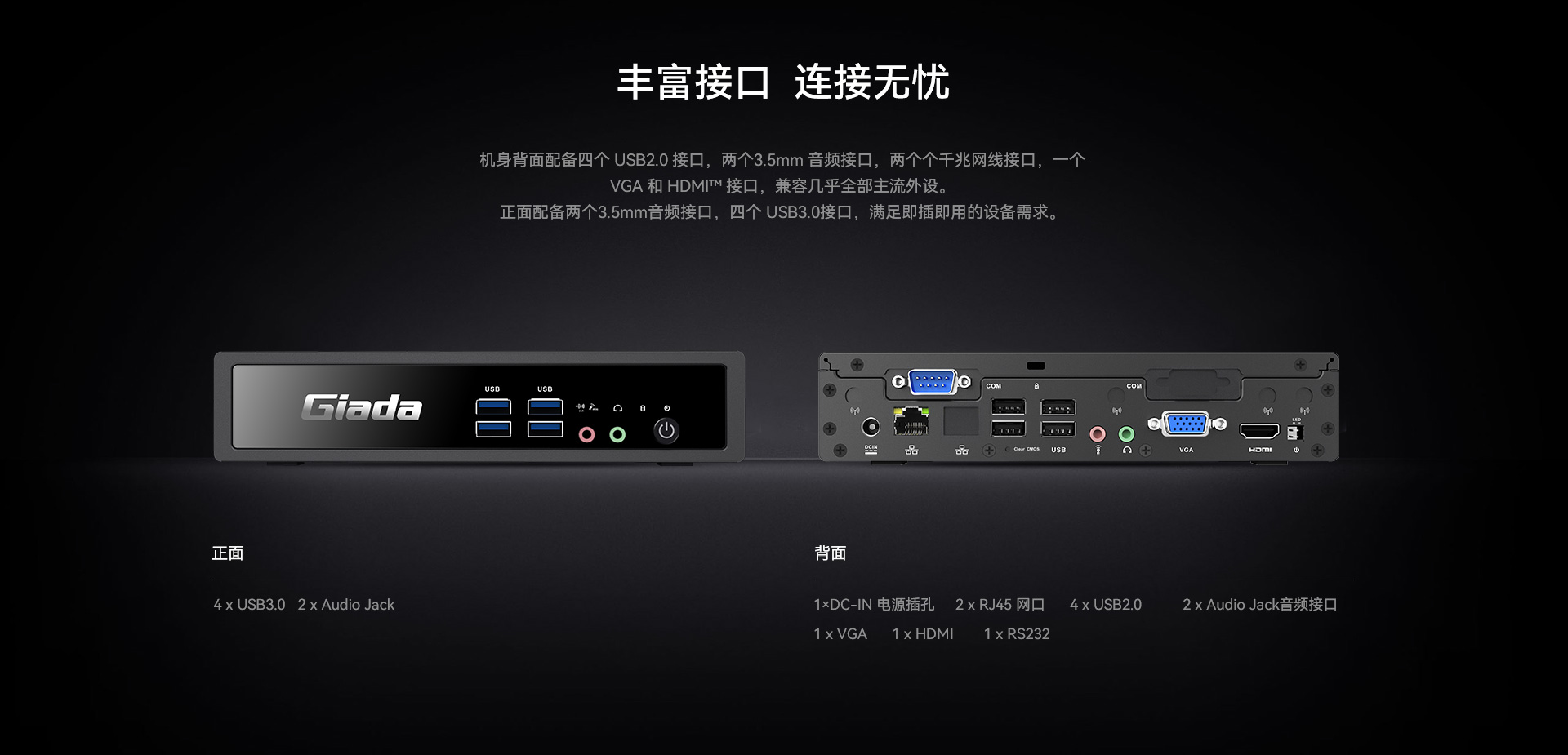 | 音频接口 | 1 x Audio out,1 x Mic in,1 x 二合一音频口(后置) | |
